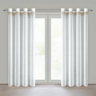 Hotová žakárová záclona v bílé barvě se zimním vánočním vzorem vloček, zakončená bordurou. Záclona je vyrobena ze 100% polyesteru ve výšce 110 cm a šířce 550 cm. Záclona má z...
