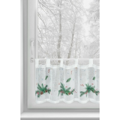 TextilCentrum kusová záclona VLOČKY 19980, zimní, vánoční vzor, s bordurou, jednobarevná bílá, výška 110 cm x šířka 300 cm (na okno)