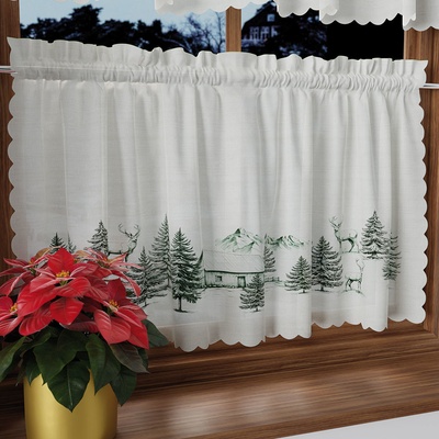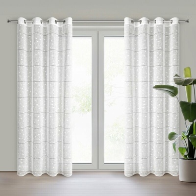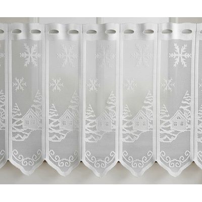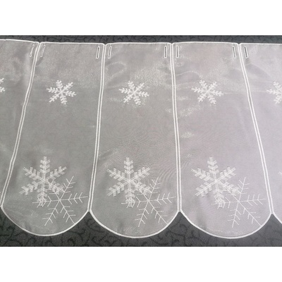 Kusová vitrážová, žakárová záclona v bílé barvě se zimním vánočním vzorem vloček, zakončená bordurou. Záclona je vyrobena ze 100% polyesteru ve výšce 90 cm a šířce 300 cm. Výška...