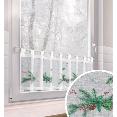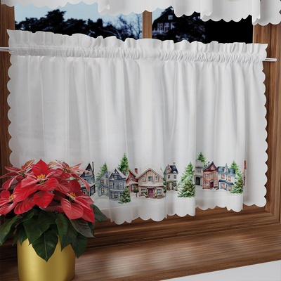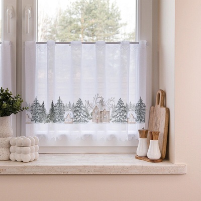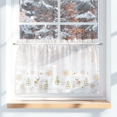 Vitrážová Záclona Připravená na Vánoce 100x40 Krátká Záclona Vánoce Bílá vitrážová záclona je hotová s potiskem na tunelu, výška 40 cm x šířka 100 cm Vitrážová Záclona je...