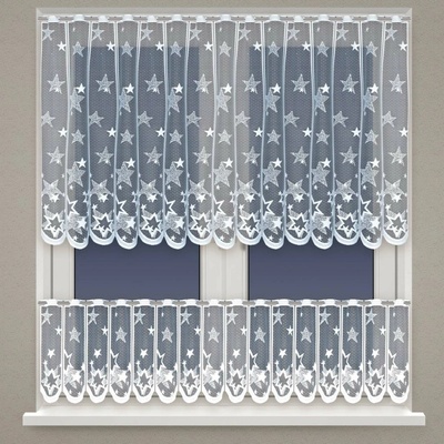 Hotová jemná žakárová záclona v bílé barvě se zimním vánočním vzorem hvězd, zakončená bordurou. Záclona je vyrobena ze 100% polyesteru ve výšce 170 cm a šířce 100 cm. Záclona má...