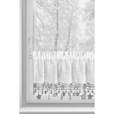 Hotová záclona se svátečním lemováním, šířka 140 cm, délka 250 cm, bílá: barva, hmotnost: 75 GSM, složení: 100% polyester, barva hvězd: bílá.