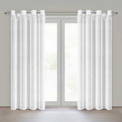 Hotová žakárová záclona v bílé barvě se zimním vánočním vzorem vloček, zakončená bordurou. Záclona je vyrobena ze 100% polyesteru ve výšce 130 cm a šířce 450 cm. Záclona má z...