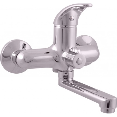 Paneláková nástěnná vanová baterie s keramickou kartuší 35 mm, keramickým přepínačem, výtokovým ramínkem a roztečí 100 mm. Povrchová úprava – chrom. Provedení: chrom Výška...