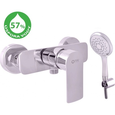 Spořící vodovodní baterie sprchová nástěnná se sprchou a pevným držákem. VLTAVA ECO - Ušetříte až 57% spotřeby vody! tato baterie je vybavena keramickou kartuší o průměru 35 mm...