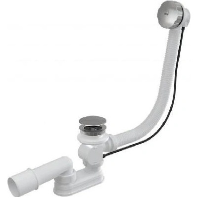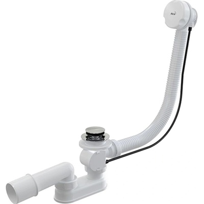 Alcadrain sifon vanový automat komplet kov, pro vany standardních rozměrů, s otvorem Ø 5,2 cm, materiál polypropylen, délka 100 cm, krytky chrom, zavírání pomocí bovdenového...