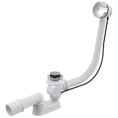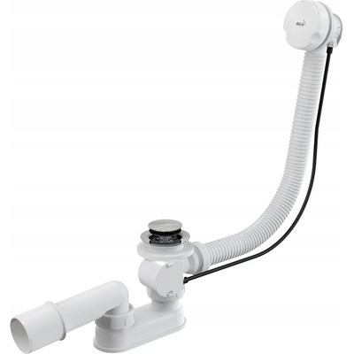 Alcadrain sifon vanový automat komplet kov, pro vany standardních rozměrů, s otvorem Ø 5,2 cm, materiál polypropylen, délka 80 cm, krytky chrom, zavírání pomocí bovdenového...