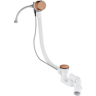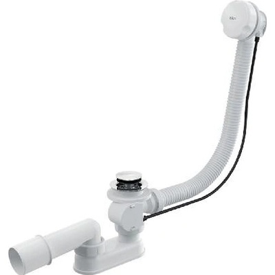 Sifon vanový automat komplet bílý, pro vany standardních rozměrů, s otvorem Ø 5,2 cm, materiál polypropylen, délka 120cm, krytky chrom, zavírání pomocí bovdenového ovládání,...