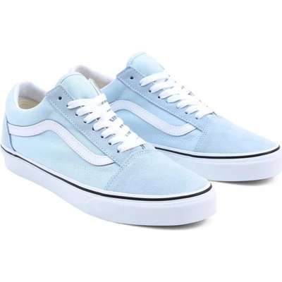 Dámské boty Vans Old Skool baby blue/true white. Na boční straně klasický pruh Vans. Lehké vyztužení kolem kotníků. Na patě vyražené logo Vans. Materiál: semiš, plátno.