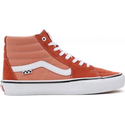 Model sk8-hi od značky Vans. Kolekce 2023. Barva oranžová. Materiál: semiš, plátno, guma.