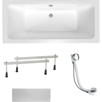 Obdélníková vana vyrobená z akrylátu, tloušťka materiálu je 5 mm. Určení vany - levá i pravá orientace. Včetně sifonu, nožiček a čelního panelu.