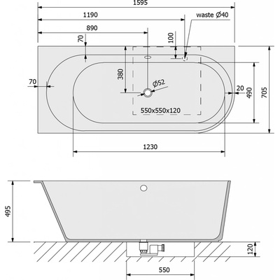 Vana samostatně stojící - s úzkým osvětleným otvorem pro přepad a armaturní deskou na přední straně, se speciální konstrukcí pro usnadnění instalace - jednolitý materiál...