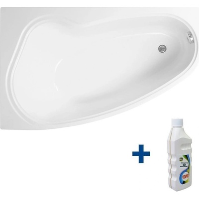 Asymetrická rohová vana barva bílá lesk materiál akrylát rozměry 153,5 x 100,5 x 47 cm objem 230 l s přepadem plocha pro opření zad na jedné straně odtok uprostřed Odtoková a...