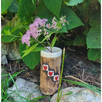 Keramická vázička se srdíčky Ručně vyrobená vázička se srdíčky potěší jako dárek. Je možné použít i jako tužkovník. Materiál: keramika Údržba: otřít utěrkou nebo vlhkým...