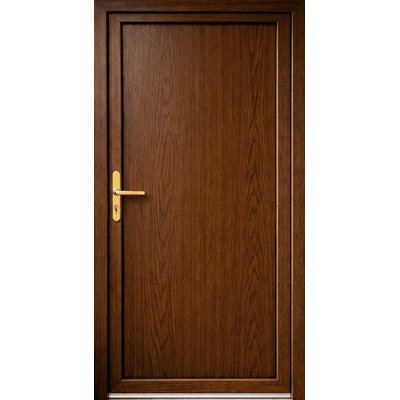Skladem – vchodové jednokřídlé plastové dveře Emily Plné v barvě zlatý dub / bílá o rozměru 80 x 198 cm (rozměr i se zárubní) se otevírají ven a jsou levé. Jednoduchý nadčasový...