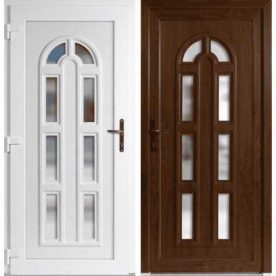 OknaDvereNaMiru.cz Vchodové plastové dveře Venus + INOX orámování zlatý dub / bílá levé otevírání dovnitř 98 x 198 cm