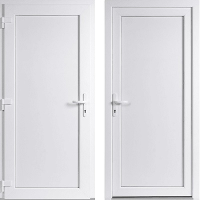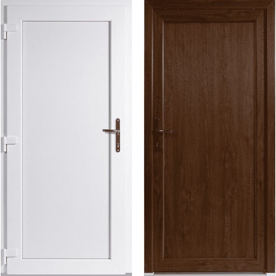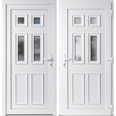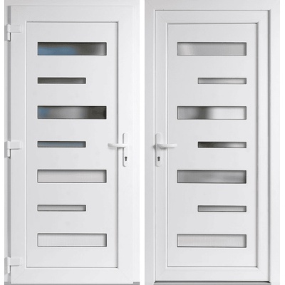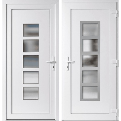 Skladem – jednokřídlé vchodové plastové dveře Venus + ozdobné INOX orámování kolem skla z venkovní strany, s izolačním dvojsklem crepi 32mm v rozměru 98 x 198 cm (rozměr i se...