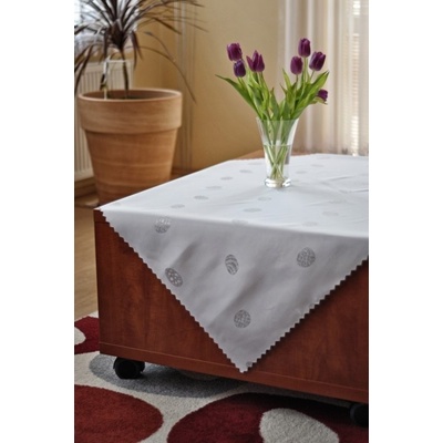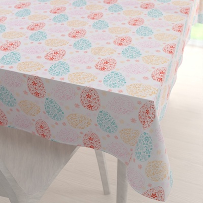 Teflonový obdélníkový ubrus na jídelní stůl s velikonočním vzorem barevných kraslic na bílém podkladu, vyrobený ze 100% polyesterové látky s vodoodpudivou a nešpinivou...