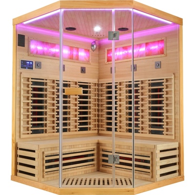 Interiérová sauna určená pro dvě osoby. Karbonové a fullspektrální zářiče. Vyrobená z kvalitního dřeva, s hned několika barevnými módy osvětlení a ionizátorem kyslíku....