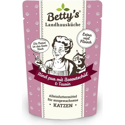 Bettyn sáček venkovská kuchyně pro kočky - čisté hovězí maso s brutnákovým olejem S čistým hovězím masem nabízíte své kočce kompletní výživu ve třídě sobě vlastní....