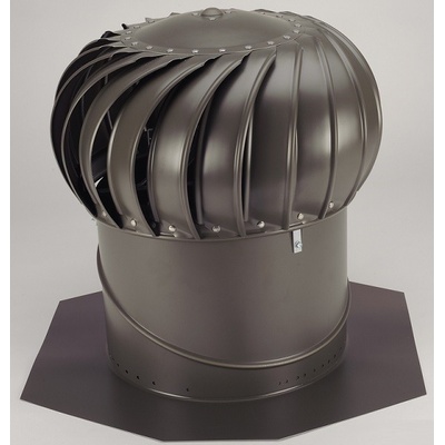 Barvený hliníkový komplet ventilační turbíny se skládá z rotační hlavice, stavitelného krku (od 0°do 45°) o průměru 305 mm a ploché osmihranné základny. Vhodné pro rovné krytiny...