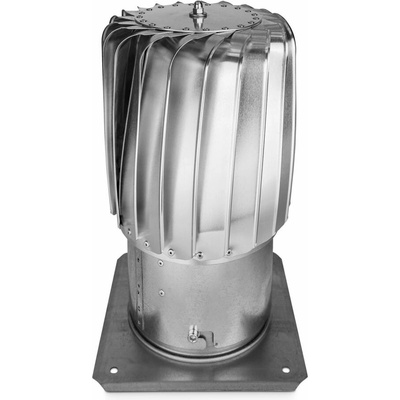 Barvený hliníkový komplet ventilační turbíny se skládá z rotační hlavice, stavitelného krku (od 0° do 45°) o průměru 356 mm a ploché osmihranné základny.