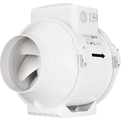 Potrubní ventilátor radiální, pr. 125 mm, 320 m³/h, 25 dB(A), 23 mmH2O (225 Pa), IPX4 Pro odtah až 18 m ZDARMA držák pro montáž na zeď nebo strop Odnímatelné příruby pro snazší...