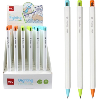- šestihranné plastové tělo- stiskací mechanismus- výsuvný hrot- obsahuje ořezávátko- tuha: 2mm