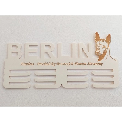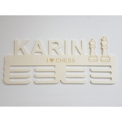 VIP 3D dřevěné obrazy do domácnosti na zakázku s motivem na přání - věšák na medaile jméno 02, různé barvy - Malý 3D motiv 300 mm x 300 mm (490Kč)