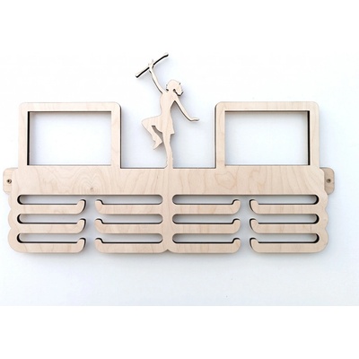Věšák na medaile s fotorámečkem na 2 ks fotografií, tanec Věšák na medaile se siluetou tanečnice. Vyroben z 8 mm překližky s fotorámečky pro 2 ks fotografií o rozměru 15x10...