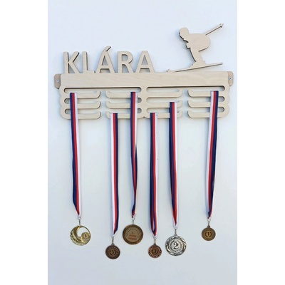 Věšák na medaile se jménem, lyžování Věšák na medaile se siluetou lyžaře a jménem - jméno prosím uveďte v objednávce do poznámky. Vyroben z 8 mm překližky. Za příplatek je...