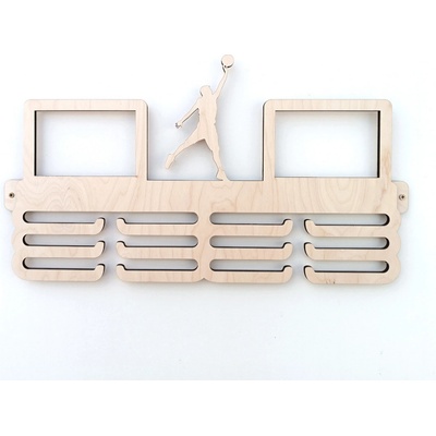 Věšák na medaile s fotorámečkem na 2 ks fotografií, basketball Věšák na medaile se siluetou. Vyroben z 8 mm překližky s fotorámečky pro 2 ks fotografií o rozměru 15x10 cm. Za...