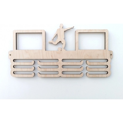 Věšák na medaile s fotorámečkem na 2 ks fotografií, fotbal Věšák na medaile se siluetou florbal. Vyroben z 8 mm překližky s fotorámečky pro 2 ks fotografií o rozměru 15x10...