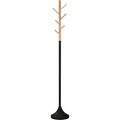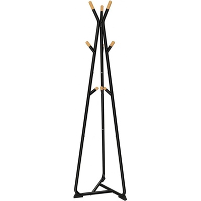 Provedení: Moderní stojanový věšák je vyroben v kombinaci kovu a dřeva. Konstrukce je kovová, lesklá černá. Věšáčky jsou zakončeny přírodním dřevem. Zboží je dodáváno v demontu.