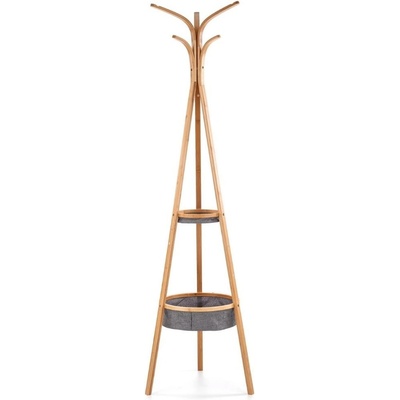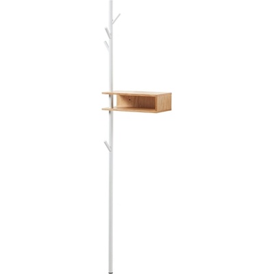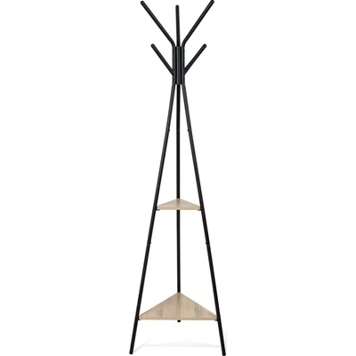 Kovový věšák v černé barvě s poličkou z překližky v přírodní barvě. Více háčků využijete pro pohodlné zavěšení oblečení či doplňků. Stabilní základna zajišťuje pevnost a...