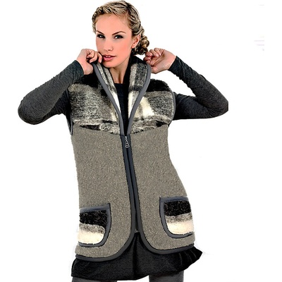 Moderní vesta z ovčí vlny dvoubarevná se zapínáním na kolíkové knoflíky je v široké oblibě u všech generací díky tepelným vlastnostem vlny, elegantnosti a kvalitním provedením....