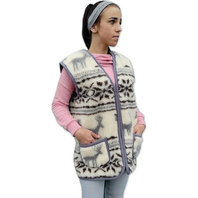 Moderní příjemná vesta na zip z ovčí vlny s norským vzorem sobů vhodná pro domácí nošení, stejně tak i na chalupu nebo do přírody. Vesta je díky přírodním vlastnostem vlny,...