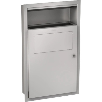 Odpadkový koš na dámské vložky a drobné odpadky pro montáž pod omítku, nerezová ocel, povrch jemný matový, tloušťka materiálu 0,8 mm, objem cca 6 litrů, s integrovaným držákem...