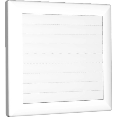 Bílá větrací čtyřhranná plastová mřížka rozměru 187 x 187 mm, se síťkou proti hmyzu, s odjímatelnou žaluzií, regulace mřížky pomocí páčky, kvalitní ABS plast, s přírubou průměru 150 mm do plastového potrubí.