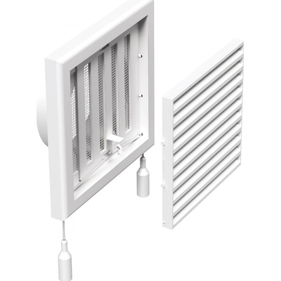 Větrací mřížka s rámečkem uzavíratelná 150x150 bílá HC0213 - Použití: Vhodná pro exteriér i interiér. - Otevírání a uzavírání pomocí páčky nebo šňůry. - Materiál:...