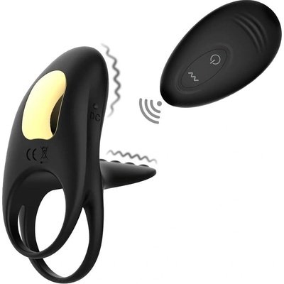 Černý vibrační kroužek s masérem klitorisu je vyrobený z velmi pružného silikonu s výstupky na vnitřní straně kroužku i okolo vibrátorku, který udrží penis déle ztopořený a...