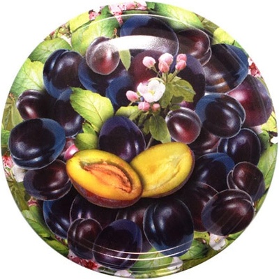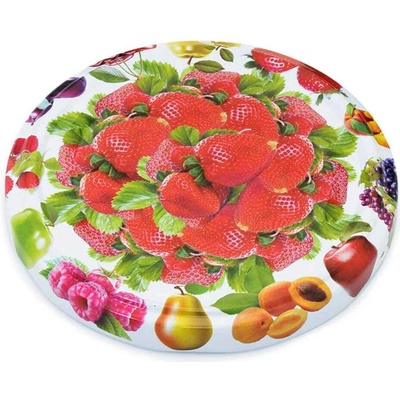 Materiál kov s dekorem ovoce. Zavařovací víčko na závitové sklenice (Twist) o průměru hrdla 82 mm, pro zavařování do 100°C.