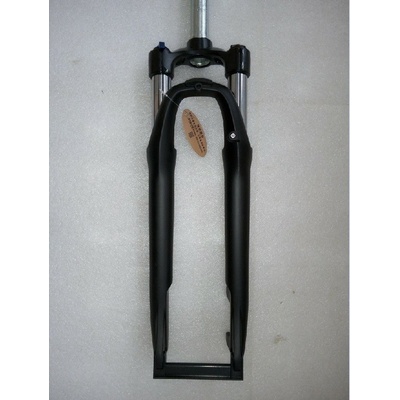 Odpružená vidlice Treking 28" na klasickou 9mm osu vypínání páčkou na korunce vidlice zdvih 50mm krk ocel 1 1/8" délka 155mm, závit 60mm pouze disk-brzdy-PM barva černá lesk hmotnost 2470g/váženo