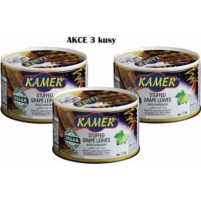AKCE 3 KUSY Vinné listy plněné rýží 3 x 400 g Země původu: Turecko.Složení: vinné listy, voda, cibule, rýže, slunečnicový olej, sůl koření, kyselina citrónová E330.Nutriční hodnoty na 100 g výrobku: 690 KJ / 165 kcal, tuk 9 g, z toho nasycené 1 g, sacharidy 19 g, z...