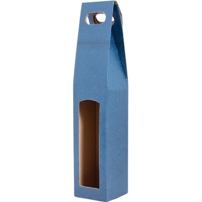 Modrá dárková odnoska na víno. Ideální pro balení lahve vína, pokud chcete někoho obdarovat. Na krabici je výřez, díky kterému je vidět etiketa vína. Horní část krabičky na víno...
