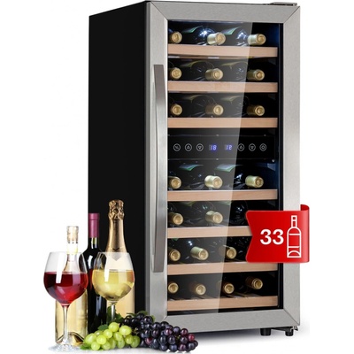 Zažijte maximální požitek z vína s vinotékou Klarstein Shiraz 27 Duo. Díky dvěma odděleným chladicím zónám zajišťuje, že červená i bílá vína mají současně správnou teplotu pro pití. Díky panoramatickým skleněným dveřím a vnitřnímu LED osvětlení máte vždy dobrý výhled...