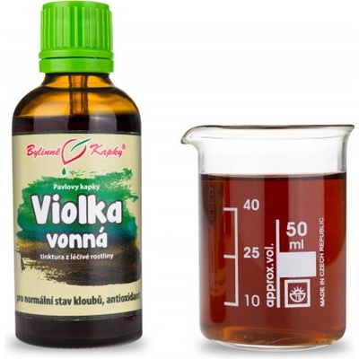 Violka vonná (fialka) tinktura 50 ml - Bylinné Kapky Violka vonná (fialka) (bylinná tinktura - Pavlovy bylinné kapky). Přírodní bylinný celkový (komplexní) extrakt z natě léčivé rostliny violky vonné pro normální stav kloubů. Tinctura Violae herba. Tincture Sweet...