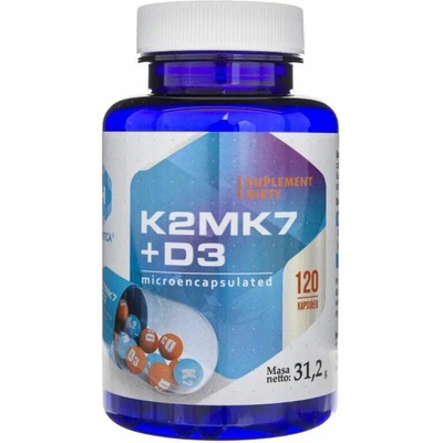 Vitamín K2 MK7 + D3 Forte 1000 I.U. 125 tablet Doplněk stravy Vitamin D3 (cholekalciferol) přispívá k normálnímu vstřebávání/využití vápníku a fosforu. Vitamin D...