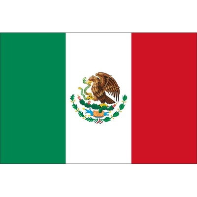 Vlajka - Mexiko Ocelové kroužky na zavěšení vlajky Rozměry: 90 x 150 cm Material: Polyester