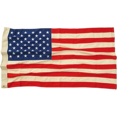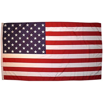 Kvalitní americká vlajka z odolného materiálu. Zaručujeme stálobarevnost. S 2 zesílenými oky pro upevnění na lanko.